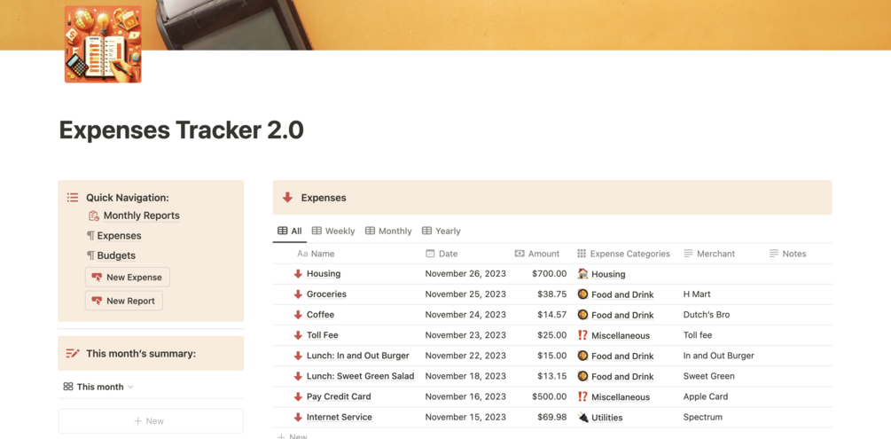 AI-powered monthly reports (available with Notion AI) deliver tailored advice and trends to help you optimize your spending. Think of it as your personal finance guru!